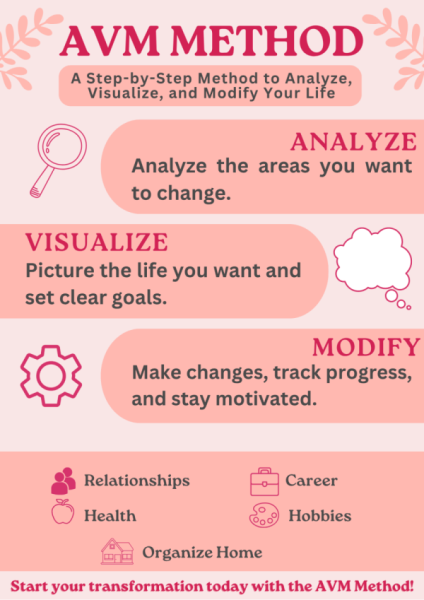 The AVM Method (Analyze, Visualize, Modify) is a proven, step-by-step technique designed to help women over 40 transform their lives. It guides you through analyzing your current situation, visualizing your goals, and making meaningful changes to achieve lasting personal growth.